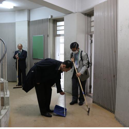 OBの皆様にもなじみの深い円形校舎がついに建て替えです。 宕峯会では同窓会、総会、懇親会を兼ねた円形校舎大掃除会を2015年4月5日に行いました。 参加者全員で最後の掃除です。この校舎はいったい何人の生徒を送り出したのか?ふと思います。 落ちついて見てみると色々な部分で歴史的建造物を思わせる部分があり建物的にも素晴しいものだったんだなーとしみじみ。 机も生徒もいない円形校舎。校舎としての役割を終えた円型校舎。ありがとう円形校舎と参加者OBの皆様は心の奥でつぶやいた事でしょう。
