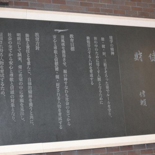 清風宕峯会から教育方針を彫刻した石の黒板を贈呈致しました。