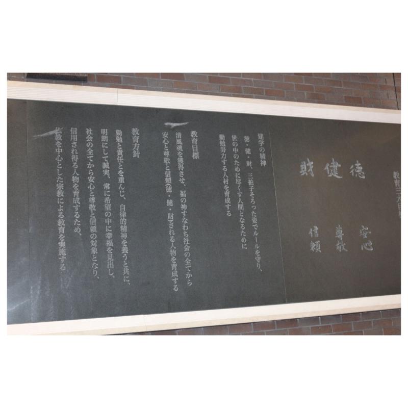 第12回清風宕峯会総会におきまして、会員皆様からご承認いただきました ”清風高校創立70周年レリーフ”完成に伴い盛大に除幕式を開催致しました。 そのレリーフは清風学園の基本方針、清風魂、校歌などが刻まれた黒板をイメージしたものとなっており、 今通っている生徒の皆様は毎日この黒板の横を通り通学します。その生徒の皆様が社会に出て、 成功したりまたはつまずいたりした時にもう一度この場に戻って自分を見つめ直せる場所になる事を願っております。