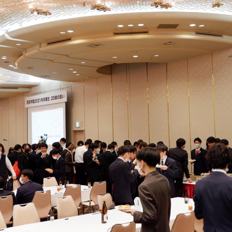 2023年1月9日(月・祝)夕刻、ホテルアウィーナ大阪にて清風学園2020年度卒業生(6か年コース)有志による「20歳の集い」が開催されました。 同窓会で開催のサポートをさせていただき、 有志の呼びかけにより同窓生200人弱が一堂に会しました。 校長先生、副校長先生もお越しくださり 食事とレクリエーションなど楽しい時間になりました。 新成人の皆さんおめでとうございます。 清風宕峯会ではこのように同窓会開催サポートも行っております。 是非ご相談ください。