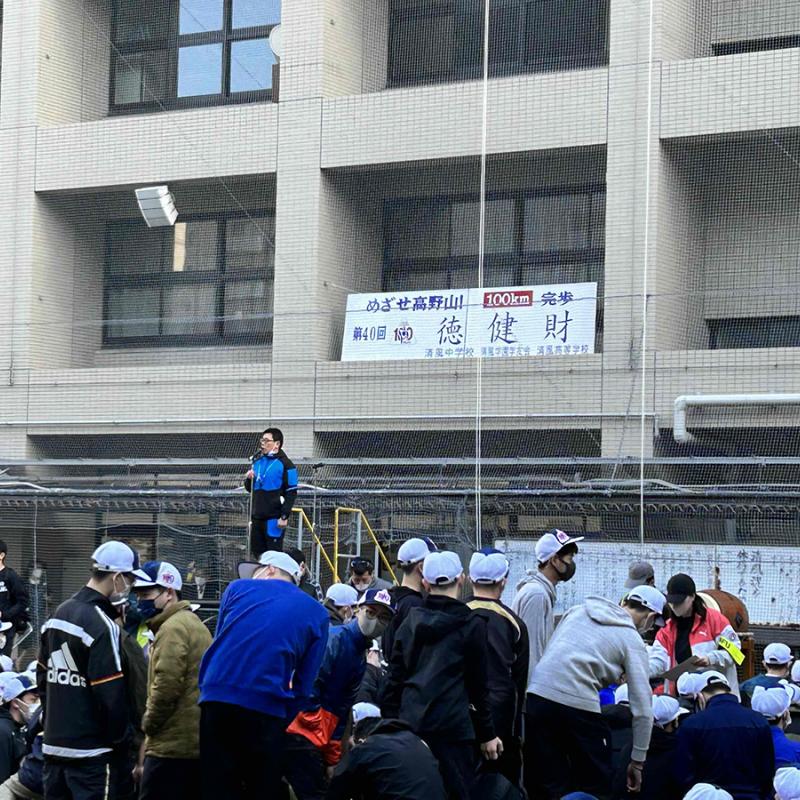 2023年3月15日(水)・16日(木)の2日間にわたって、恒例行事になっておりました100km歩行が開催されました。 様々な感染対策のもと2019年以来、4年ぶりの実施です。 私共、清風宕峯会役員も出発お見送りに参加しました。 参加する生徒たちがこの行事を通じて、一層成長されることを願っております。